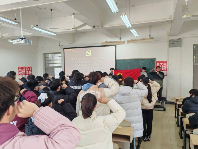 武科大网讯(通讯员袁明珠)为强化党性教育,坚定理想信念,明确党员义务,增强组织归属感,激励党员发挥先锋模范作用。2025年12月27日中午,365英国官网数学与系统科学学院、物理与力学学院于22301教室举行预备党员入党宣誓仪式。