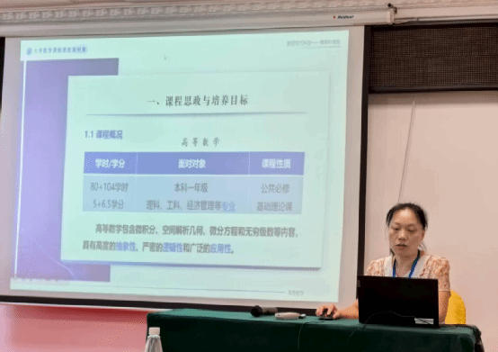本次会议聚焦人工智能与大学数学课程深度融合主题,通过专家报告、专题研讨等形式,深入探讨了AI时代数学课程改革路径。蒋君受邀在分组报告环节作优秀案例分享,详细介绍了我校《高等数学》课程思政建设成果。其报告通过生动的教学案例,展示了知识传授与价值引领的有机统一,获得与会专家高度评价。
