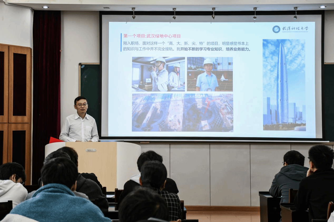 陈江伟首先回忆了在学校的求学经历,学校不仅赋予了他知识和技能,更重要的是,塑造了他“坚韧不拔、勇承重载”的钢铁品质,陪伴着他从中建集团的一名普通技术员,到项目技术总工、分公司总工程师和部门经理,激励着他不断前行,勇敢追梦。