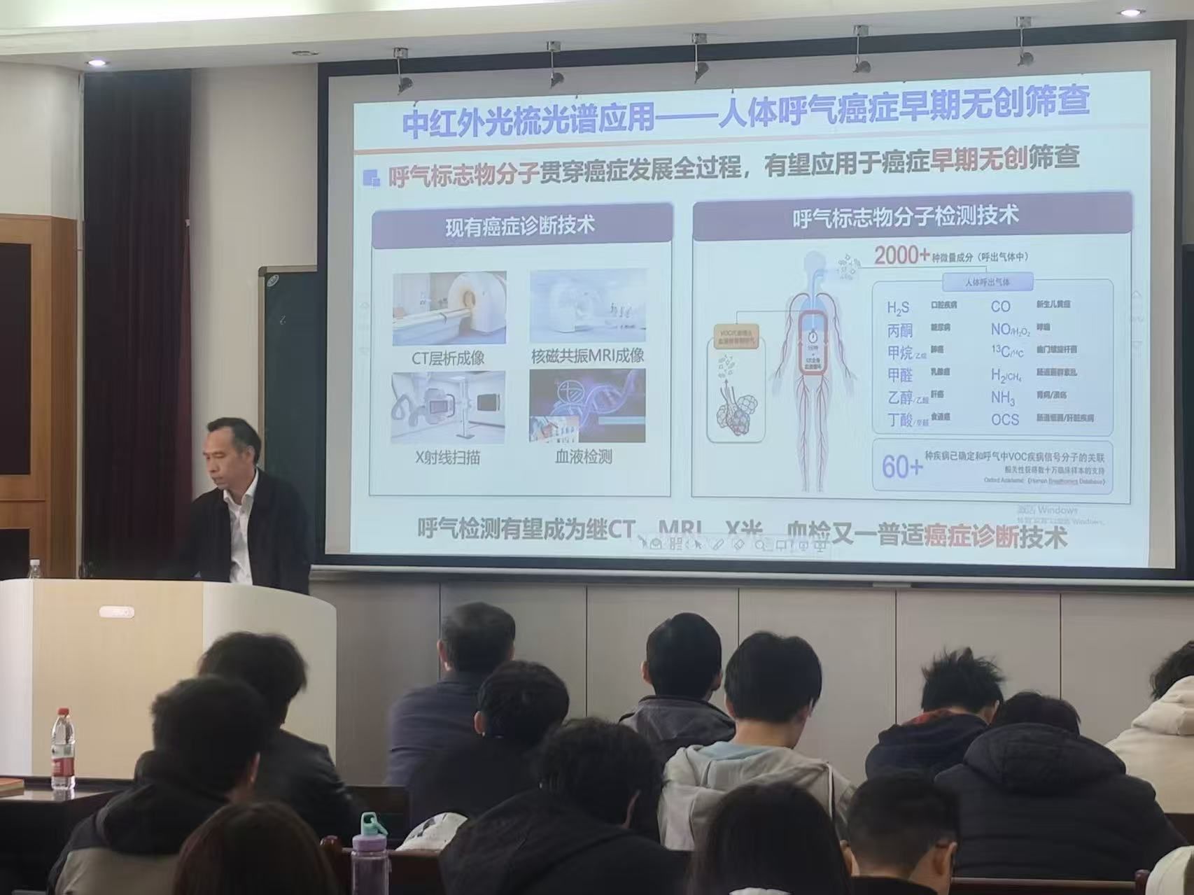 柳晓军研究员详细介绍了其课题组在阿秒电子超快动力学、多维相干光谱与应用、飞秒光学频率梳及应用等方面的最新研究进展,并阐述了其成果在高灵敏多成分痕量分子探测、疾病诊断、核光钟等方面的实际应用。