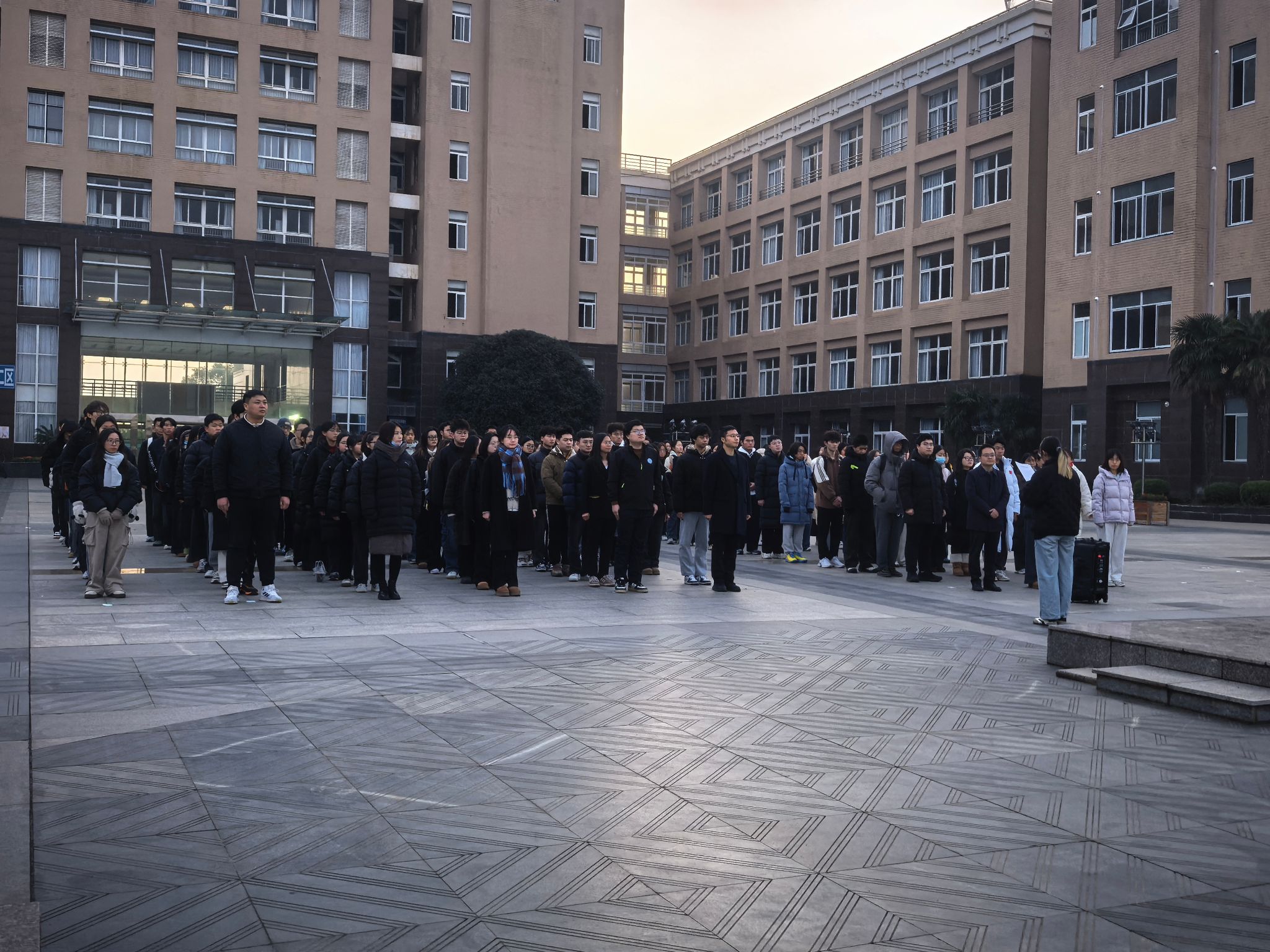升旗仪式后,思政课教师代表董佳如老师以“赓续伟人精神,勇担青春使命”为主题发表演讲。今年正值毛泽东同志诞辰132周年,董老师深情回顾了毛泽东同志作为马克思主义中国化开创者的伟大贡献,并围绕“坚守信仰初心”“锤炼专业本领”“传承奋斗精神”三点,对学生提出殷切期望。她强调,青年学子要深入研读《实践论》《矛盾论》等经典著作,在实践中感悟真理力量,将个人学术追求融入国家发展大局,以青春之我书写马克思主义理论传承与创新的时代华章。