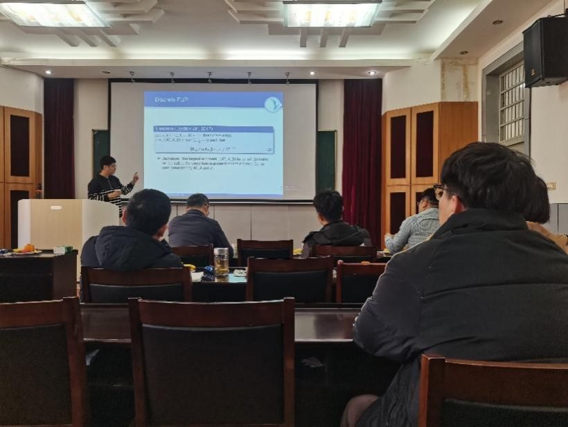 受学院邀请,华南理工大学李兵教授、武汉大学廖灵敏教授、复旦大学上海数学中心史汝西教授和湖南大学吴猛教授于12月28日上午9:00来院作学术报告。本次“分形几何与动力系统系列报告会”由院长丁义明教授主持,武汉大学、武汉理工大学、湖北大学、广东第二师范学院等高校的相关领域专家,以及本院相关方向教师与研究生参加了此次学术活动。